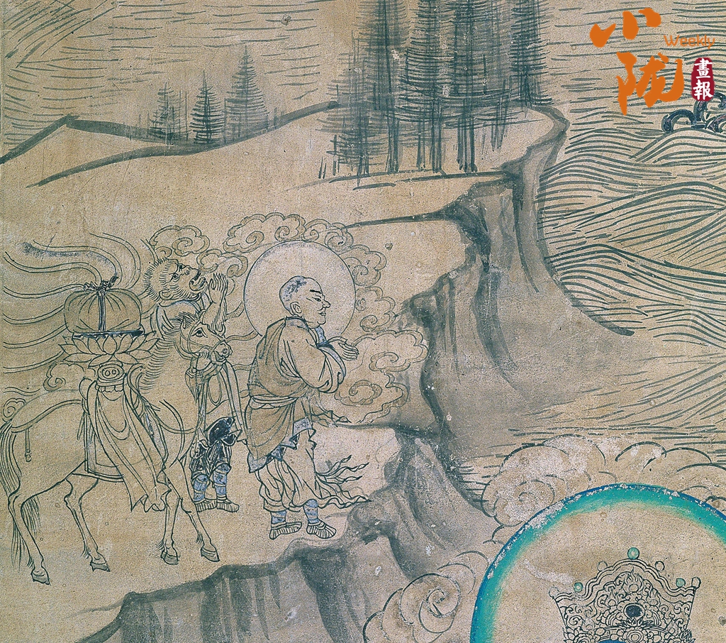 榆林窟作為莫高窟的“姊妹窟”,在馬文化的呈現(xiàn)上更藏別樣驚喜,更是《西游記》故事圖像的重要源頭。第3窟《普賢變》中的玄奘取經(jīng)圖,白龍馬穩(wěn)穩(wěn)馱著佛經(jīng)立于河岸,緊隨玄奘與猴面行者拜別普賢菩薩,這一形象比明代《西游記》典籍早了三百余年,將絲路取經(jīng)故事與馬的意象完美聯(lián)結(jié),成為藝術(shù)史上的經(jīng)典瞬間。