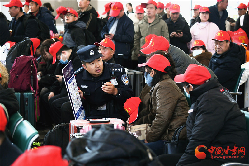 這批務(wù)工人員來(lái)自定西市各縣區(qū),既有復(fù)崗務(wù)工人員也有新聘崗務(wù)工人員,為鋪就這條溫暖返崗路,蘭州鐵路公安處定西北站派出所積極與定西北車站、客運(yùn)部門通聯(lián),專門開辟綠色通道,暢通進(jìn)站、安檢、檢票等進(jìn)站環(huán)節(jié),劃定專門候車進(jìn)站區(qū)域,同時(shí),增派警力逐一引導(dǎo)務(wù)工人員有序進(jìn)站,幫助提拿大件行李,講解防范電信詐騙小妙招,進(jìn)一步保障了務(wù)工團(tuán)體旅客乘車安全。
