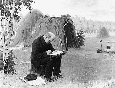 列寧在拉茲利夫湖畔匿居地寫作《國(guó)家與革命》(油畫)M.索科洛夫繪