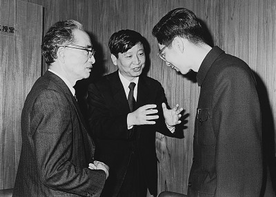 1976年秋天,增田涉(左)與魯迅之子周海嬰(右)在日本仙臺(tái)會(huì)面,中間系本文作者,在為兩人當(dāng)翻譯