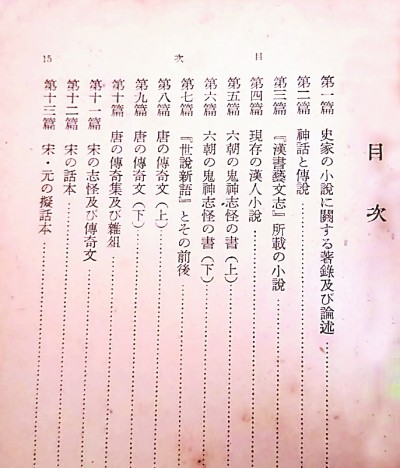 日本巖波書店出版的日文版《中國(guó)小說(shuō)史略》目錄,增田涉譯