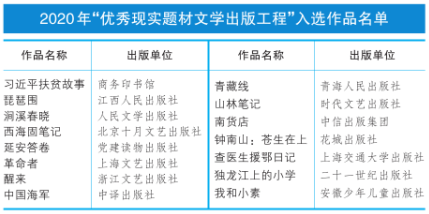 2020年“優(yōu)秀現(xiàn)實題材文學出版工程”入選作品名單