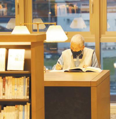 一位老年讀者正在日本高梁市圖書館內(nèi)閱讀。(劉軍國 攝)