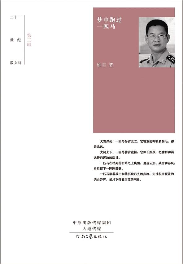然而,因?yàn)閷?duì)文學(xué)的過(guò)度癡迷,堆雪的成績(jī)卻一落千丈。1992年12月,帶著高考失利的挫敗感和對(duì)綠色軍營(yíng)的向往,堆雪在刺骨的北風(fēng)中,離開(kāi)家鄉(xiāng)踏上了西去的列車(chē),在天山北麓雪花的狂歡中,開(kāi)始面對(duì)人生的另一張“畫(huà)布”。這張畫(huà)布是嶄新的,它既有西北戈壁一望無(wú)際的廣闊,又有天山雪峰千年不化的高潔;既有西部群山的峻拔,也有大漠長(zhǎng)風(fēng)的凌厲。在軍號(hào)與口令、隊(duì)列與歌聲中,堆雪第一次觸摸到了一支槍管帶給血肉的冰涼與質(zhì)感;在匍匐前進(jìn)中,第一次真正意義上完成了一個(gè)人對(duì)于身下土地的全身心擁抱;在崗樓上,通過(guò)那個(gè)可以瞭望的窗口,思考一位軍人與邊關(guān)之月的關(guān)系,一個(gè)游子與故鄉(xiāng)的關(guān)系;在坦克的顛簸與馳騁中,讓高度興奮的血液在身體里隨著戰(zhàn)車(chē)左突右沖,一日千里。