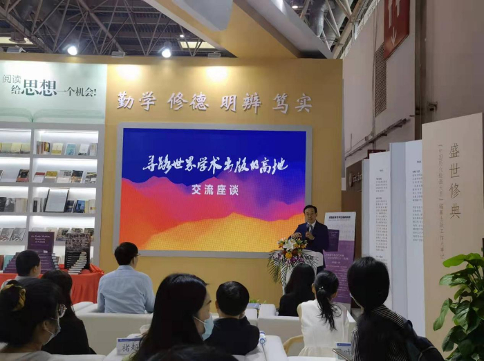 新書(shū)發(fā)布后,與會(huì)嘉賓共同就“尋路世界學(xué)術(shù)出版的高地”這一主題展開(kāi)交流座談。潘群、袁亞春、中國(guó)科技出版?zhèn)髅焦煞萦邢薰径聲?huì)秘書(shū)張凡、中國(guó)社會(huì)科學(xué)院古代史研究所副所長(zhǎng)鄔文玲、中國(guó)社會(huì)科學(xué)院經(jīng)濟(jì)研究所副研究員常旭做了主題發(fā)言,就如何堅(jiān)持學(xué)術(shù)出版品質(zhì)、推動(dòng)科技出版從“走出去”到“走進(jìn)去”、如何講好中國(guó)故事等方面做了深入的探討。