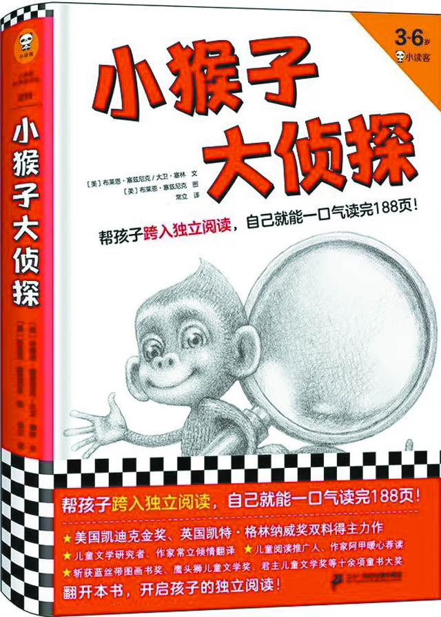 《小猴子大偵探》是本“欺騙性”很強(qiáng)的書,第一次讀到時,我真的被騙到了!聽說是《造夢的雨果》作者的新作,我完全沒理會這本書的介紹,就迫不及待地翻開來。好家伙,共有5章,差不多200頁,我心想,總得一兩個小時才能讀完吧。正當(dāng)我擺開架勢,準(zhǔn)備好好享受童書鬼才塞茲尼克和塞林的新作時,翻著翻著,大概六七分鐘吧,嗯——居然就翻到了最后一頁!天哪,我當(dāng)時想,這是怎樣的一本書啊!不對,這真的是一本書嗎?