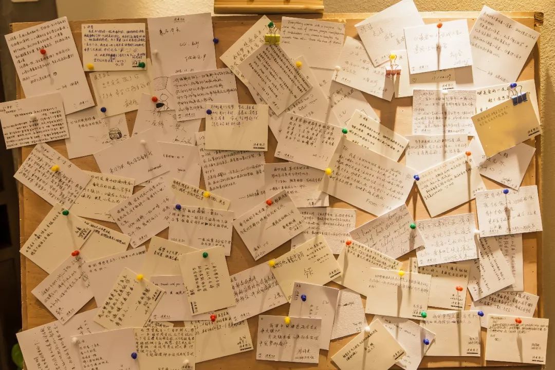 ▲滿滿一面墻的手寫卡片