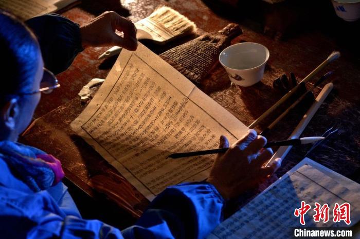 中新網(wǎng)成都11月16日電 (唐倩)戴著一副老花眼鏡,袁東玨坐在修補(bǔ)臺(tái)旁,臺(tái)面上平鋪著一疊泛黃殘損的書頁,彎彎曲曲滿是蟲蛀痕跡,一張張粘連在一起,這是一部清代年間的族譜,蟲蛀很嚴(yán)重。她很小心地揭起一頁布滿蛀洞的古籍,輕輕展開,有的地方緊緊粘在一起,她用一把竹子磨制的起子輕輕挑開。