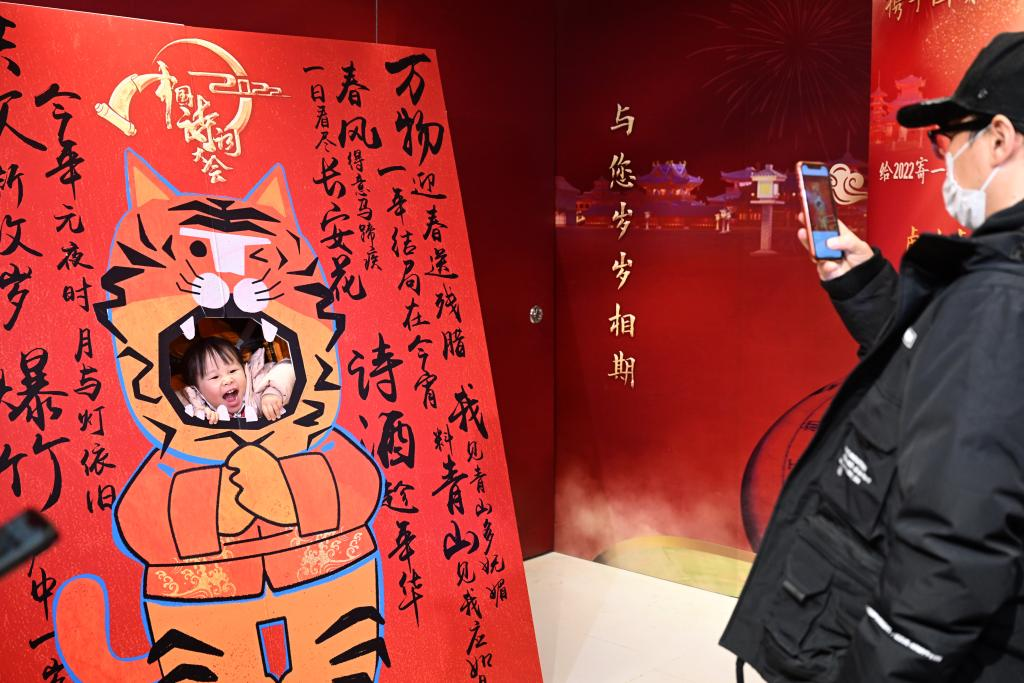 春節(jié)假期,作為文化節(jié)目《2022中國詩詞大會(huì)》的線下活動(dòng),詩詞市集在北京國貿(mào)商城舉行。活動(dòng)邀請(qǐng)市民寫下一句詩,給2022年寄出一張?jiān)娫~明信片,帶動(dòng)詩歌熱潮,推動(dòng)詩詞文化走入百姓家。