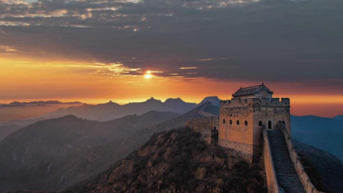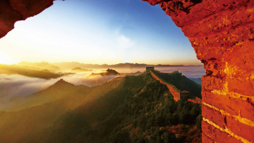 跨峻嶺,穿荒原,橫瀚海,經(jīng)絕壁,縱橫十萬(wàn)里。望不斷長(zhǎng)龍烽垛,雄關(guān)隘口,猶如玉帶明珠,點(diǎn)綴成江山錦繡。起伏奔騰,飛舞盤(pán)旋,長(zhǎng)城就是中國(guó)人給這個(gè)世界增添的偉大奇跡。