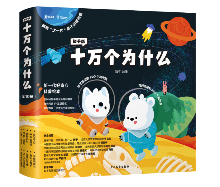 不是所有的科普讀物,都能叫《十萬(wàn)個(gè)為什么》。1961年至今,《十萬(wàn)個(gè)為什么》累計(jì)發(fā)行量近2億冊(cè),是至今仍未被超越的現(xiàn)象級(jí)科普?qǐng)D書(shū)。這套書(shū)在普及和傳播科學(xué)知識(shí)方面,發(fā)揮了非常積極的作用,影響了中國(guó)幾代青少年,堪稱(chēng)是新中國(guó)影響力最大的青少年科學(xué)啟蒙讀物。作為國(guó)民級(jí)科普經(jīng)典,《十萬(wàn)個(gè)為什么》誕生至今已經(jīng)60多年。盡管已經(jīng)有了之前版本的《十萬(wàn)個(gè)為什么》,但是時(shí)代是不斷進(jìn)步的,特別是進(jìn)入數(shù)碼時(shí)代以后,孩子們比以往的所有時(shí)代,擁有著更多的信息和知識(shí),腦袋瓜里也萌發(fā)著更新的問(wèn)題和疑惑。他們發(fā)出的越來(lái)越多“超綱”問(wèn)題,是以前的課本、科普書(shū)上沒(méi)有的,也讓父母?jìng)兘?jīng)常面對(duì)“不知如何作答”的情況。新的“為什么”,需要新的解答。在少兒經(jīng)典科普《十萬(wàn)個(gè)為什么》出版60周年之際,知乎攜手上海少年兒童出版社,收集當(dāng)代孩子的真問(wèn)題,邀請(qǐng)各領(lǐng)域機(jī)構(gòu)和專(zhuān)家為孩子們寫(xiě)下新答案,推出了全新的知乎版《十萬(wàn)個(gè)為什么》,盡量讓孩子們的問(wèn)題都有答案。