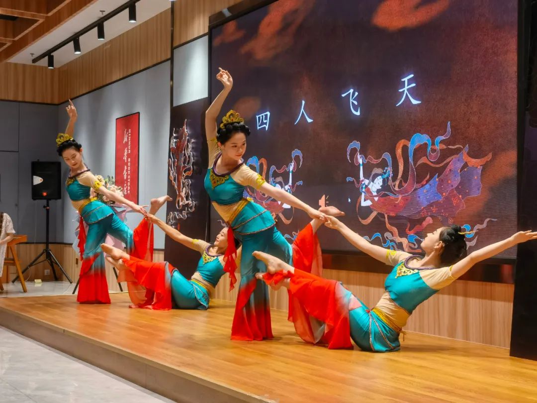 見面會現(xiàn)場,作者介紹了本書創(chuàng)作歷程,并通過“形、神、氣、韻”“抻、曲”“舞姿控制”“四臂觀音”“四人飛天”“胡旋與琵琶”等組合精彩紛呈的表演,使讀者更加直觀地了解本書的主要內容和敦煌舞蹈的文化內涵,感受敦煌舞蹈傳遞出的藝術價值、文化素養(yǎng)和無窮的魅力。