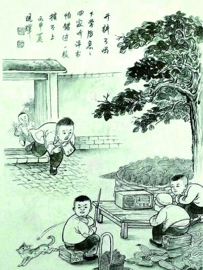 甫一翻閱,我就被深深吸引住了,欲罷不能,用半天的時間,集中讀完了其中的一冊。畫家描繪的正是我的冀中平原故鄉(xiāng)的風(fēng)光民俗,每一幅畫面,都仿佛是自遙遠的時光彼端發(fā)出的一封請柬,邀我回返五十年前的上個世紀六七十年代,回到在故鄉(xiāng)農(nóng)村度過的童年,重新體驗?zāi)欠N快樂無比的心境。
