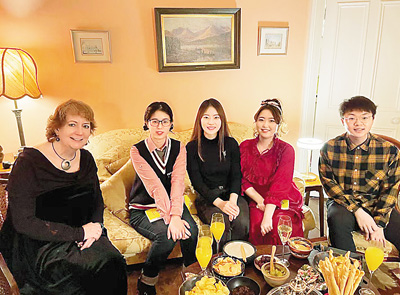 到愛爾蘭人家中做客、共度圣誕節(jié),對張靜瑄來說是新鮮的體驗。“那天晚上,我嘗到了許多圣誕節(jié)的特色美食,比如烤火雞、布丁等,我們幾名中國學(xué)生帶去了餃子,和老爺爺、老奶奶一同分享。席間,我們聊到春節(jié)和圣誕節(jié)的慶祝方式、對東西方家庭的意義等,這讓我切身體會到了不同國家的文化差異,也拓展了我的認(rèn)知,是我難忘的珍貴回憶。”周姝蕓