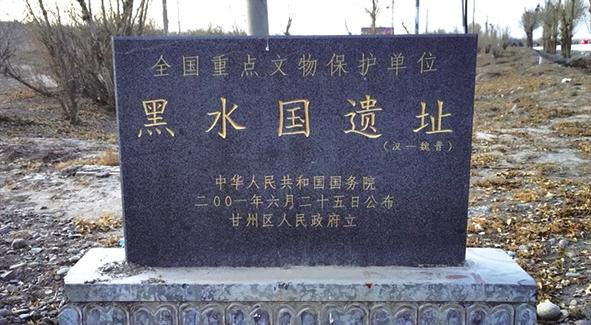 在于右任老先生寫詩后的自注,“甘州西黑水河岸古墳占地十余里,土人稱為‘黑水國’,掘者發(fā)現(xiàn)中原灶具甚多,遺骸脛骨皆長……”古黑水國遺址坐落在甘肅省張掖市甘州區(qū)西北17公里處,該遺址又稱黑水國城堡,俗稱黑水國,民間亦稱甘州老城,是“絲綢之路”上的著名驛站,距今有4000多年的歷史,是集漢唐古城、史前遺址、古寺院遺址、古屯莊、古墓葬為一體的龐大的甘州“歷史古籍”,也是集古代人文風光、沙丘、湖泊、蘆蕩、濕地為一體的河西“特色畫冊”,在考古界有“河西走廊文物寶地”之稱,1908年由俄羅斯考古學家和探險家彼得·科茲洛夫發(fā)現(xiàn)并發(fā)掘,它的發(fā)現(xiàn)是當時震驚中外的考古學大事件,2001年,古黑水國遺址被國務(wù)院公布為全國重點文物保護單位。