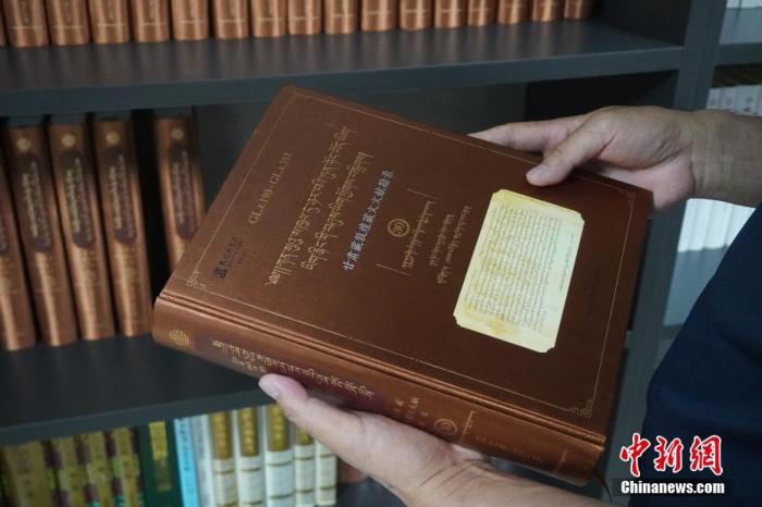 8月26日,甘肅蘭州,甘肅民族出版社資料室內(nèi)收藏的《甘肅藏敦煌藏文文獻(xiàn)勘錄》。該叢書共30卷,約2205余萬字,收錄了6700余件甘肅藏敦煌藏文文獻(xiàn),系國內(nèi)外首次以全文錄入的方式出版。 中新社記者 九美旦增 攝