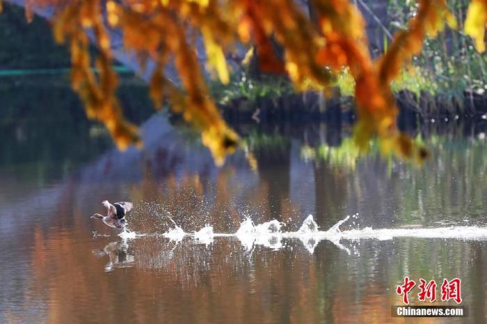 資料圖:南京燕雀湖景致。燕雀湖位于南京紫金山梅花谷南側(cè),種植大量落羽杉、池杉、水杉等色葉樹種,每到初冬時節(jié),湖畔風景如畫。 中新社記者 泱波 攝