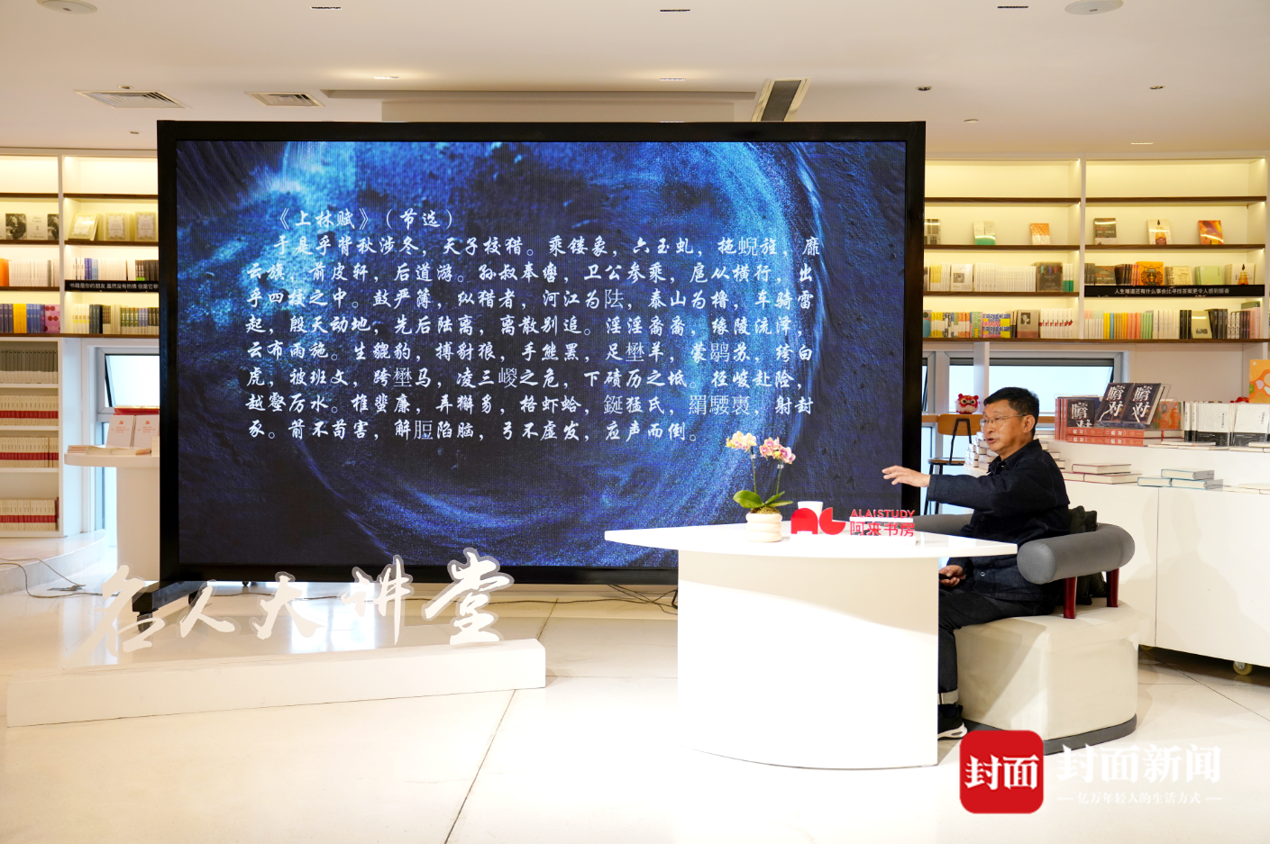 作為資深作家,阿來在講述司馬相如其人以及他所處的時(shí)代特點(diǎn)、文史知識(shí)同時(shí),還重點(diǎn)從文學(xué)的角度,講解了相關(guān)文史記載文章,還特別以《子虛賦》《上林賦》等司馬相如的作品為例,逐字逐句進(jìn)行分析“賦”這個(gè)文體的優(yōu)、缺點(diǎn)。比如在《上林賦》中,司馬相如寫楚國之子虛先生出使齊國,子虛向?yàn)跤邢壬v述隨齊王出獵,齊王問及楚國,子虛極力鋪排楚國之廣大豐饒,以至云夢不過是其后花園之小小一角。烏有不服,便以齊國之大海名山、異方殊類,傲視子虛。