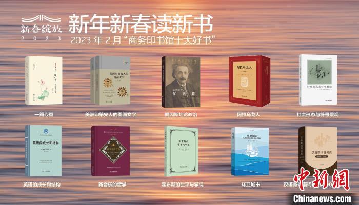 中新網(wǎng)北京2月9日電 (記者 應妮)商務印書館“新年新春讀新書·月度新書發(fā)布會”8日晚在線舉辦,發(fā)布了2023年2月“商務印書館十大好書”,分別為《一瓣心香——葉嘉瑩詩詞論稿》《美洲印第安人的圖畫文字》《愛因斯坦論政治》《阿拉烏戈人》《社會形態(tài)與符號景觀》《英語的成長和結構》《新音樂的哲學》《霍布斯的生平與學說》《環(huán)衛(wèi)城市——從美國殖民地時期直到現(xiàn)在》《漢語新詞語詞典(2000-2020)》。