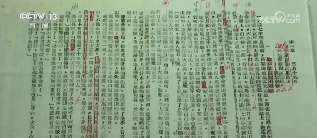 中國出版協(xié)會副理事長兼秘書長 王利明:上邊紅的字就是編輯寫的,紅的墨是助理編輯涂的,紅色下面那些字你還能看得出來,如果用藍色或黑色一畫就看不出來了。出版社編輯和作家本人、地方政府,一起經(jīng)過無數(shù)次修改,才把這本書推出來。