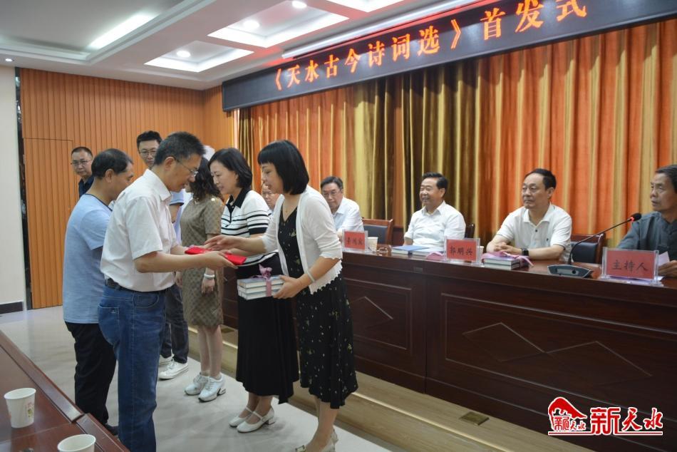 首發(fā)式上,天水市詩詞學(xué)會還為天水市圖書館、天水市檔案館、秦州區(qū)圖書館等單位贈送了《天水古今詩詞選》。