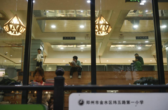 10月18日,小學生在鄭州市緯五路第一小學校園閱讀中心內(nèi)閱讀。