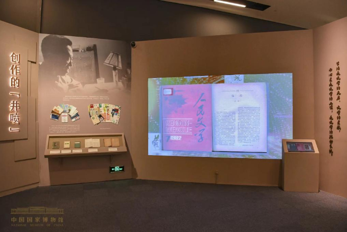 “近300張照片和550余件展品,全景記錄王蒙70年來與共和國發(fā)展歷史相伴、與祖國和人民同呼吸共命運的文學創(chuàng)作歷程。”本次展覽策展人江琳介紹,展覽展示了王蒙先生跌宕起伏的人生經(jīng)歷和各時期的代表性優(yōu)秀文學作品,表現(xiàn)他為黨、為國家、為人民寫作的初心和使命。