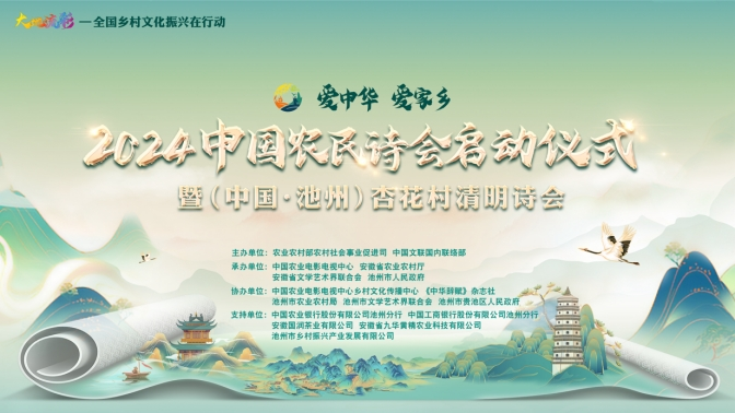 大地流彩,詩賦“三農(nóng)”。3月31日,“大地流彩—全國鄉(xiāng)村文化振興在行動(dòng)”重點(diǎn)活動(dòng)“愛中華愛家鄉(xiāng)”2024中國農(nóng)民詩會(huì)啟動(dòng)儀式暨(中國·池州)杏花村清明詩會(huì)在安徽池州杏花村文化旅游區(qū)舉辦,主題為“春和景明詩出池州”。本次活動(dòng)由農(nóng)業(yè)農(nóng)村部農(nóng)村社會(huì)事業(yè)促進(jìn)司、中國文聯(lián)國內(nèi)聯(lián)絡(luò)部主辦,中國農(nóng)業(yè)電影電視中心、安徽省農(nóng)業(yè)農(nóng)村廳、安徽省文學(xué)藝術(shù)界聯(lián)合會(huì)、池州市人民政府承辦。