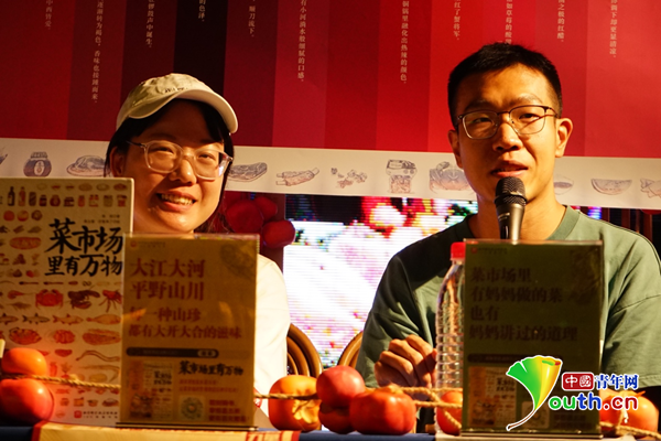中國(guó)青年網(wǎng)北京5月23日電(記者 張?jiān)姮摚┪逶率谴合慕惶娴臅r(shí)節(jié),也是菜市場(chǎng)里瓜果蔬菜交替爭(zhēng)“鮮”的時(shí)節(jié)。八方食客來到菜市場(chǎng)里,尋找盤中餐里的風(fēng)味。近日,北京科學(xué)技術(shù)出版社在蘇州雙塔市集舉辦了“菜市場(chǎng)”主題活動(dòng),并邀請(qǐng)到了《菜市場(chǎng)里有萬物》一書的作者陳瑤以及生活類播客節(jié)目《呼叫仙貝》的主播張老師來到現(xiàn)場(chǎng),分享他們的“菜場(chǎng)經(jīng)”。