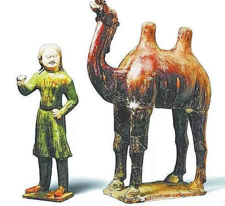 因彩而得名的“唐三彩”主要顏色有黃、綠、白、藍,還有褐、赭、黑等,“三”更多指的是泛指,意為多彩。馬和駱駝是唐三彩中較為典型的器型。