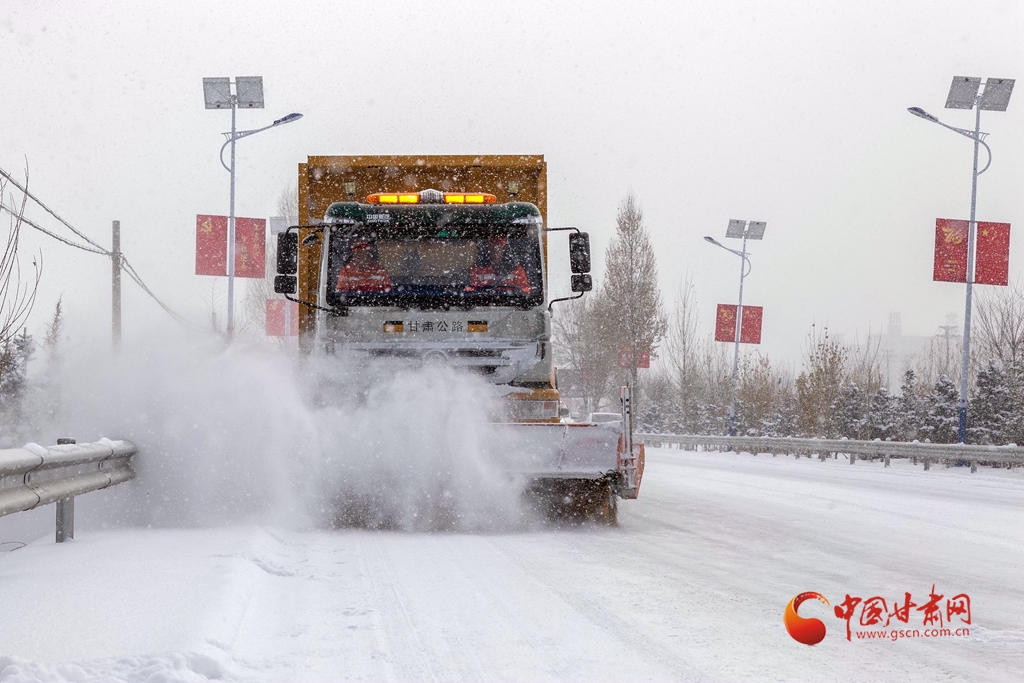 當(dāng)日,甘肅省張掖市出現(xiàn)降雪降溫天氣,給道路通行帶來不便。甘肅省張掖公路局迅速啟動(dòng)應(yīng)急預(yù)案,組織人員和機(jī)械全力以赴開展公路除雪防滑保暢作業(yè),撒布防滑料和融雪劑,確保公路安全暢通。