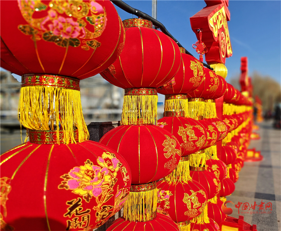 中國紅更配中國年,2月3日,記者在蘭州中山橋看到,中山橋廣場完成了節(jié)日亮化,火紅的燈籠搭配春天的裝飾,讓百年鐵橋在喜慶中迎接新春,吸引游客前來打卡拍照。
