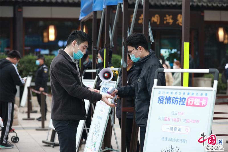 現(xiàn)場引導(dǎo)出示“健康碼”、測體溫,景區(qū)常態(tài)化防疫有條不紊;“周莊怎么玩”旅游目的地平臺提供專屬消費體驗,工作人員耐心解疑答惑,志愿者引導(dǎo)間隔出游,碼頭人員細心攙扶……