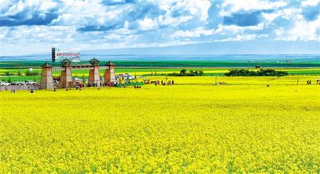 沿著國(guó)道227行走,放眼望去,遠(yuǎn)處祁連山脈高峰聳立,近處起伏的山丘高低錯(cuò)落,山間綠草如茵,色彩斑斕的野花星星點(diǎn)點(diǎn)播撒在綠草之中。山坡上點(diǎn)綴的牛羊安靜地吃草,呈現(xiàn)出一派安靜祥和的田野風(fēng)光。最耀眼的當(dāng)屬這里的油菜花,處處可見金黃一片,成為七月河西走廊一道亮麗的風(fēng)景。