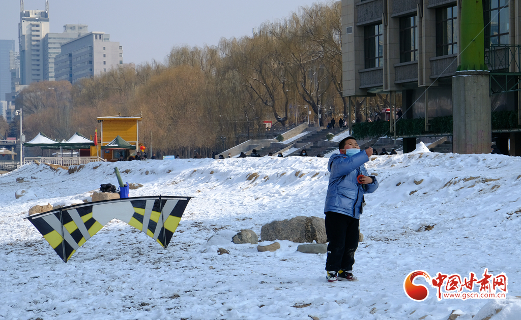 新春佳節(jié),早春時(shí)光,2月7日,雪后天晴,市民走出家門來(lái)到黃河之濱放風(fēng)箏。