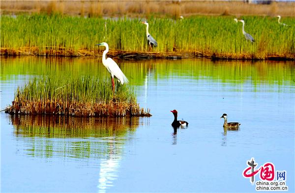很多鳥類對(duì)生存區(qū)域極為挑剔,環(huán)境稍不如意,便會(huì)另覓佳處。這里水質(zhì)清冽,空氣純凈,湖草肥美,魚食豐盛,正是很多鳥類遠(yuǎn)途中的理想家園或行途驛站。據(jù)悉,全球九條候鳥遷徙路線中有三條路過中國,其中有兩條遷徙路線在寧夏重疊,沙湖以其良好的自然生態(tài)環(huán)境,為眾多候鳥過境寧夏時(shí)提供了重要棲息繁衍地。