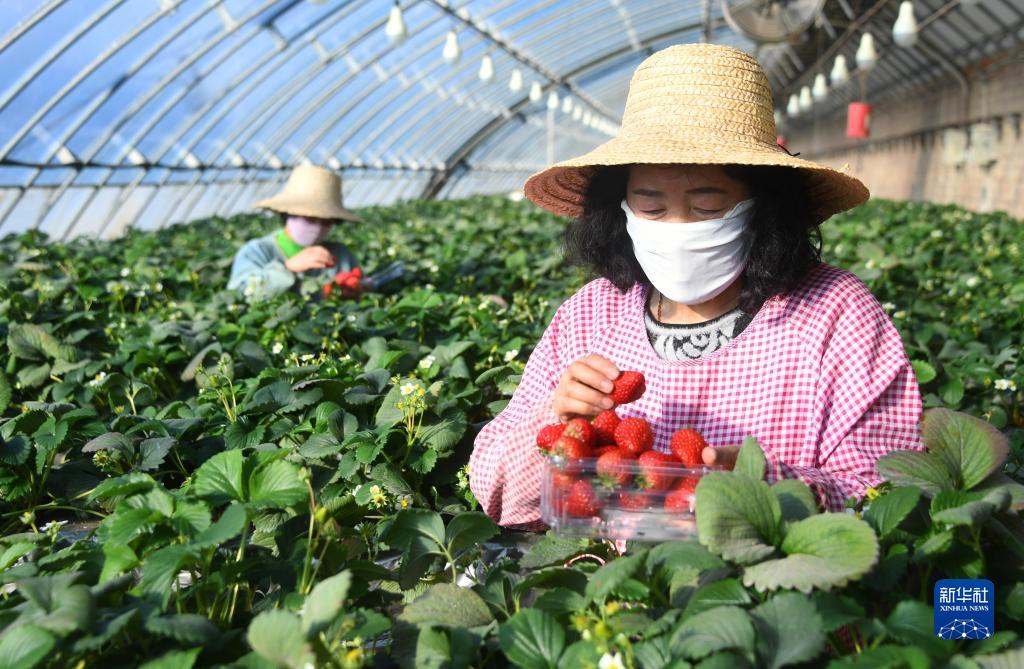 近日,位于北京市海淀區(qū)西北旺鎮(zhèn)的北京百旺農業(yè)種植園種植的草莓進入成熟期,工作人員采摘草莓供應市場,也吸引市民前來采摘品嘗。