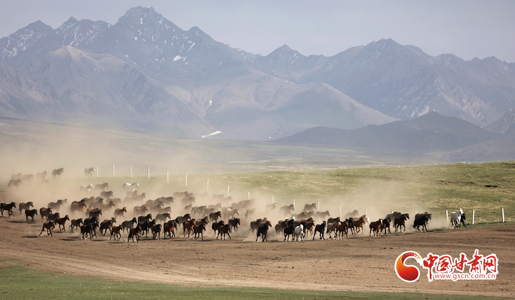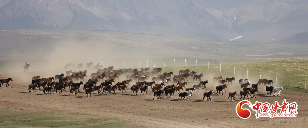 甘肅山丹:千年馬場夏日再現萬馬奔騰景象