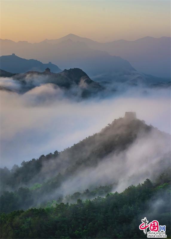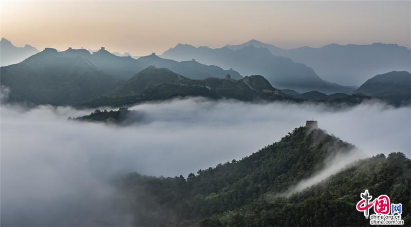 5日清晨,金山嶺長(zhǎng)城云海翻騰,如夢(mèng)似幻。
