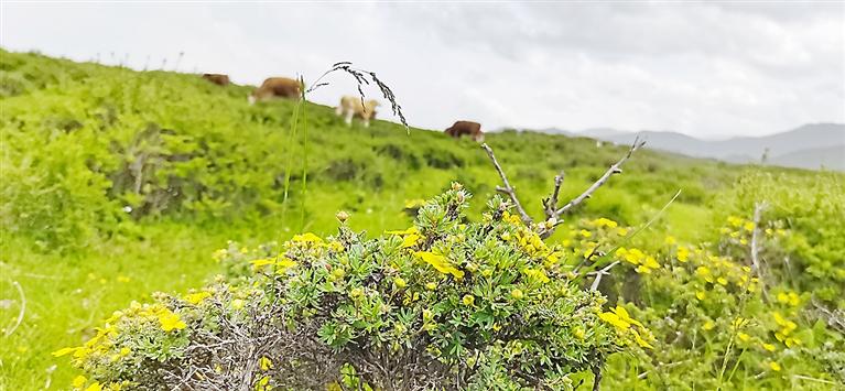 積石山縣黃草坪被譽(yù)為“原生態(tài)旅游的樂園”,是我州旅游大通道上的又一處絕美風(fēng)景。圖為6月12日,隨著金露梅的盛開,該景區(qū)迎來大批游客,人們置身其中,盡享大自然的饋贈。