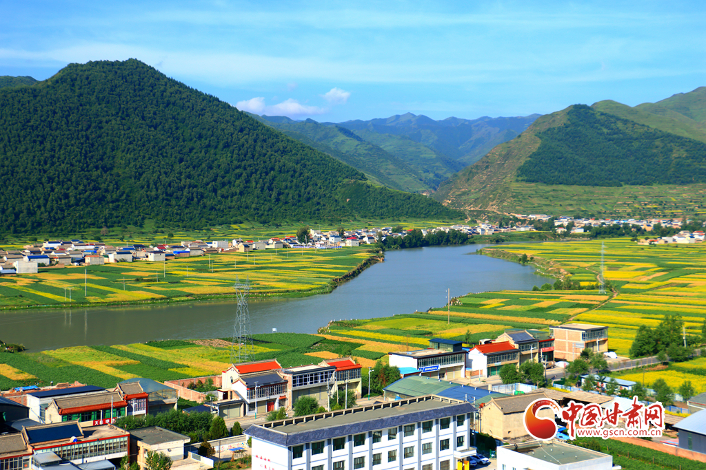 盛夏時(shí)節(jié),岷縣十里鎮(zhèn)洮河兩岸的油菜花競相綻放,與民居、山川、林地、豐收在望的各類中藥材相映,構(gòu)成了一幅生態(tài)宜居的田園畫卷,美不勝收。