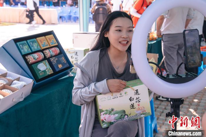 主播現(xiàn)場直播帶貨,銷售建蓮。 李南軒 攝