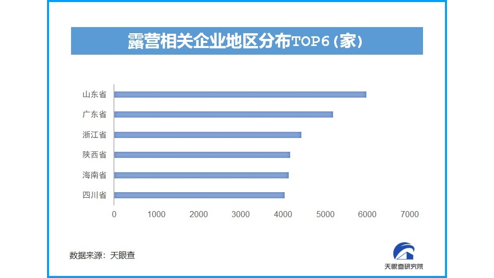 人們被疫情壓抑了的旅游需求,在露營市場得到釋放。根據(jù)天眼查大數(shù)據(jù),我國目前已有超過6.6萬家與露營相關(guān)的企業(yè),近3年露營相關(guān)企業(yè)注冊總量增長迅猛。在地域分布上,山東的露營相關(guān)企業(yè)數(shù)量最多,近6000家。廣東、浙江、陜西、海南、四川等緊隨其后,均超過4000家。