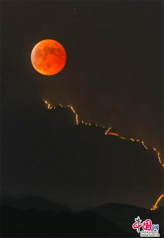 【點睛】11月8日晚,2022年天文奇觀——月全食天象現(xiàn)身。初冬的金山嶺長城,顏值依舊是巔峰,那一輪紅月亮,月全食(紅月亮)天象,驚艷了天上人間。