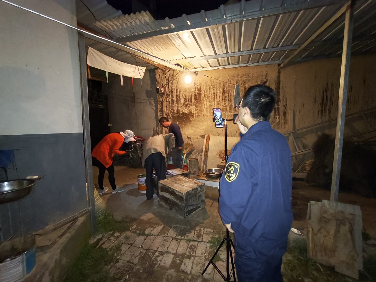 在她身后,蘭州海關(guān)幫扶工作隊(duì)員們各司其責(zé),有的手扶打光燈隨時(shí)調(diào)整補(bǔ)光,有的緊盯攝像機(jī)鏡頭及時(shí)調(diào)整畫幅和角度,有的作為觀眾與文香蓮女士眼神交流……儼然一個(gè)專業(yè)拍攝團(tuán)隊(duì)。