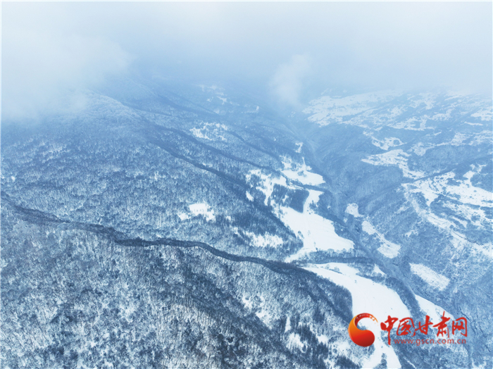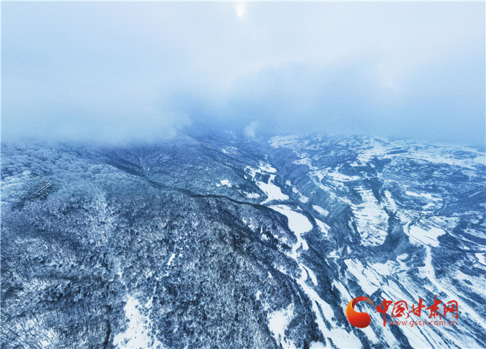 雪花像是美麗的精靈飄落山間,又像是上帝手中的畫筆,勾勒出了一幅優(yōu)美的水墨世界,正如詩(shī)句一樣“白雪卻嫌春色晚,故穿庭樹作飛花”。遠(yuǎn)處大霧又為關(guān)山蓋上了神秘的面紗,層層疊疊,仙氣繚繞,令人嘆為觀止。