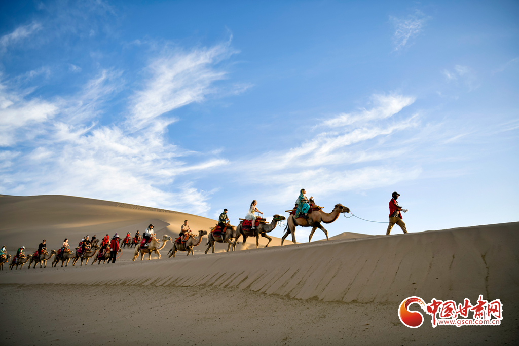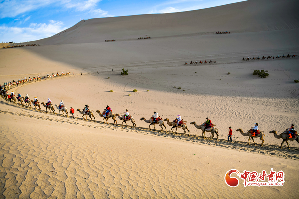 【隴拍客】敦煌駱駝排隊(duì)“上班” 千年絲路令游客“神往”