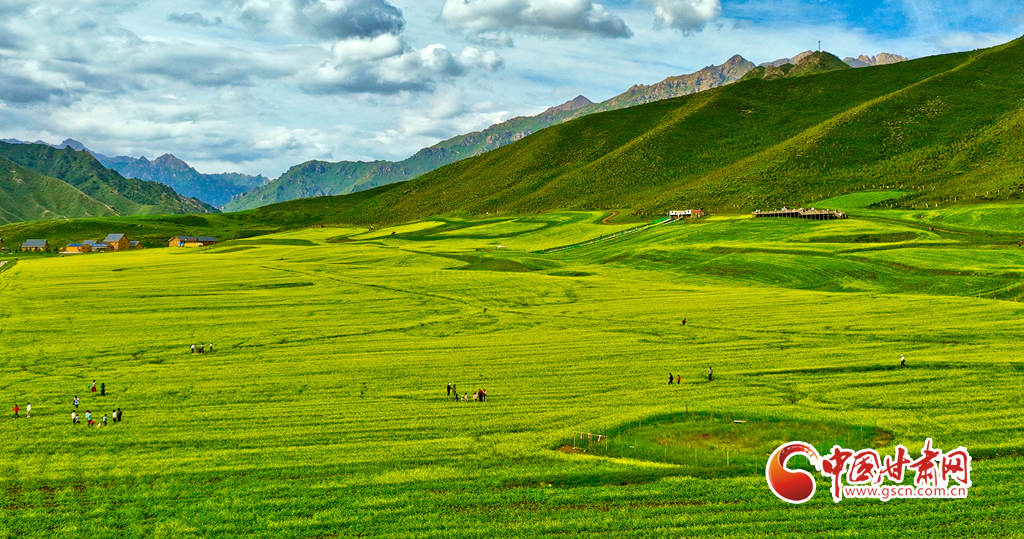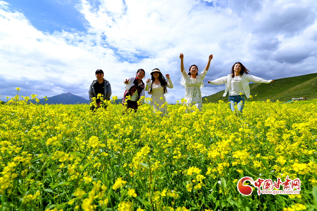 連日來,甘肅省張掖市民樂縣萬畝油菜進(jìn)入盛花期,金黃的油菜花海與草原綠野相連,在藍(lán)天白云的映襯下美不勝收,成為河西走廊地區(qū)的一道別致風(fēng)景,吸引了眾多國內(nèi)外游客前來觀光旅游。