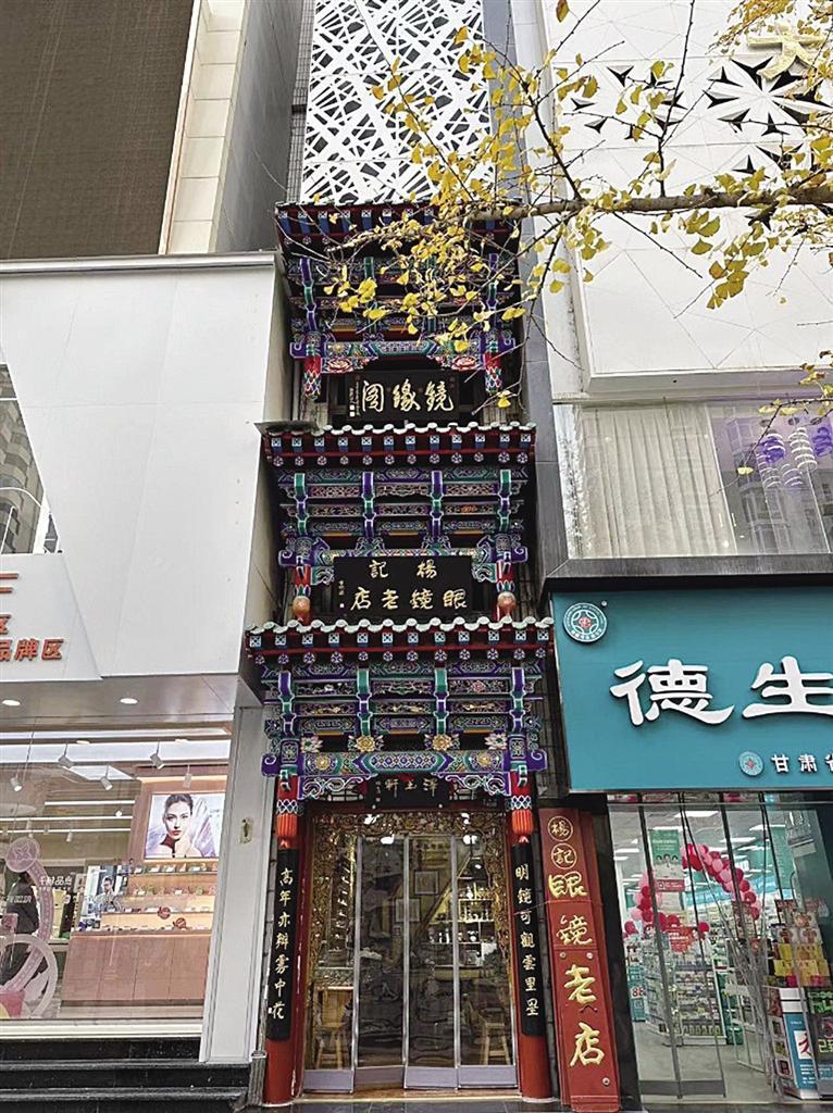 榫卯鑲嵌、手工木雕、精致彩繪、金箔貼邊,在張掖路步行街上,楊記眼鏡行的門樓招牌格外亮眼,雖然只有三四米寬的窄小門面,但店外從上而下的三塊古韻招牌彰顯出這家店的“不簡單”。“最下面這塊‘澤玉軒’的招牌是我家祖輩楊澤玉開創(chuàng)這家眼鏡行時留下的字號”,楊記眼鏡行是蘭州一家老字號的石頭眼鏡售賣和維修小店,光是制作修理石頭眼鏡這項手藝就已經(jīng)傳到了第五代,其店鋪在二十世紀(jì)八九十年代就獲得過商務(wù)部的“中華老字號”認(rèn)可。