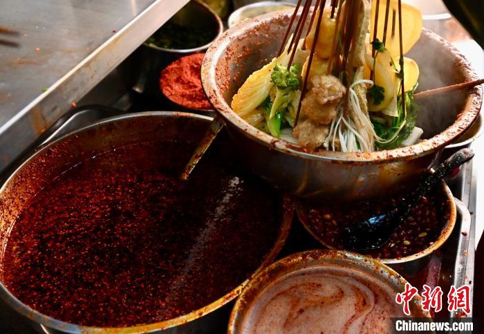 “我們會一次性熬制可以用20天左右的老料,保存起來,煮湯時挖取幾勺,加水熬制數(shù)小時,才能烹飪出濃濃的湯底,煮出來的菜才香。”楊繼兵說,每家麻辣燙的紅油辣子也各有“獨家秘方”,大多用八角、香葉、花椒等香料磨粉調(diào)味,加一些白芝麻,再用炸香的熱油一潑,辣香味隨之襲來。